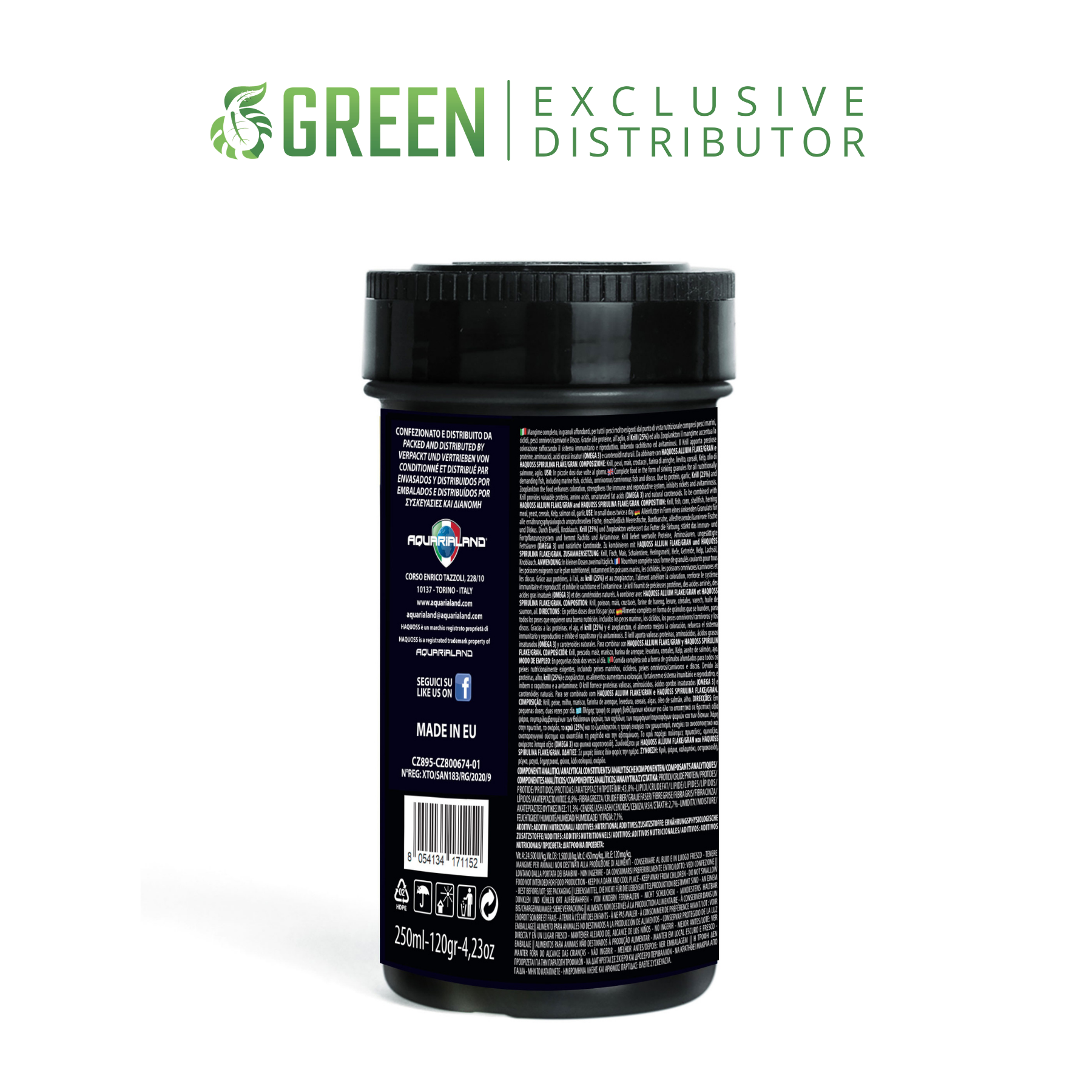 Complete sinking pellets food for everyday feeding of all nutritionally demanding fish, including marine fish, cichlids, omnivorous/carnivorous fish and Discus. Due to the special and careful selection of ingredients with high protein, vitamin and metabolic content (GARLIC), and due to the high concentration of Krill (25%) and Zooplankton, the food will enhance colouration, particularly strengthening the immune and reproductive systems, inhibiting rickets and avitaminosis. It reduces stress, shyness and enhances sociability in fish. Krill provides valuable proteins, amino acids, unsaturated fatty acids (OMEGA 3) and natural carotenoids. These ingredients make the food extremely palatable and essential for feeding fish. To optimise the diet we recommend combining with HAQUOSS ALLIUM FLAKE/GRAN and HAQUOSS SPIRULINA FLAKE/GRAN.Â